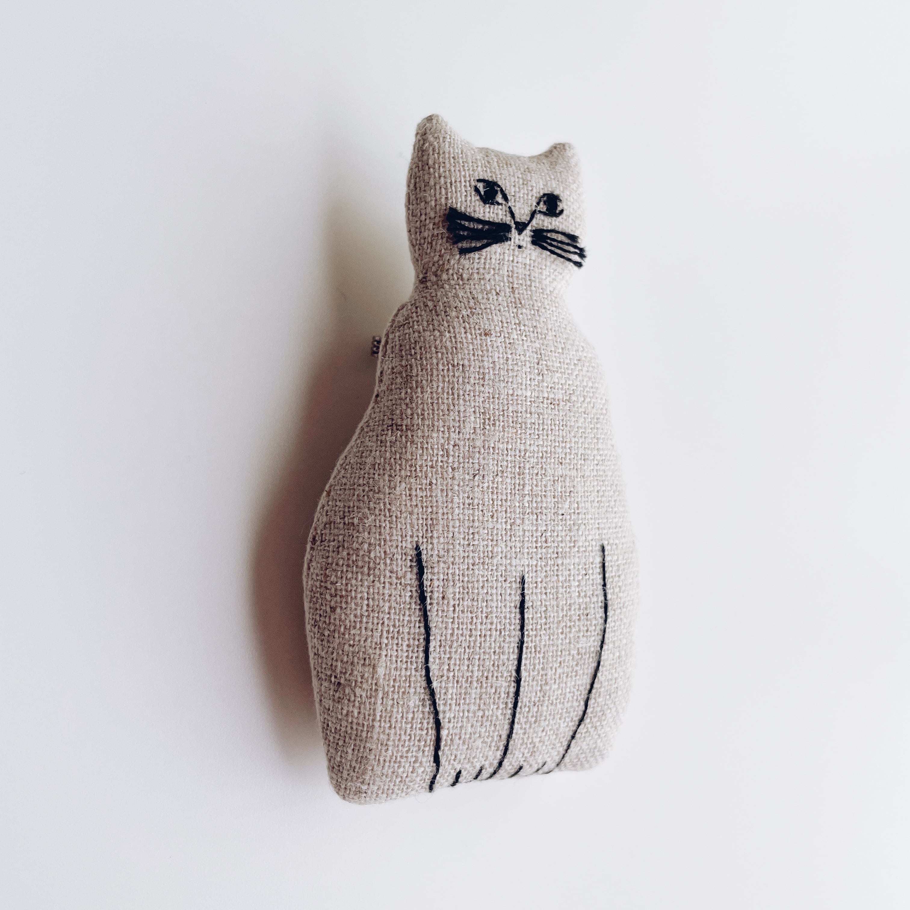 リネン生地に猫の刺繍を施しました。