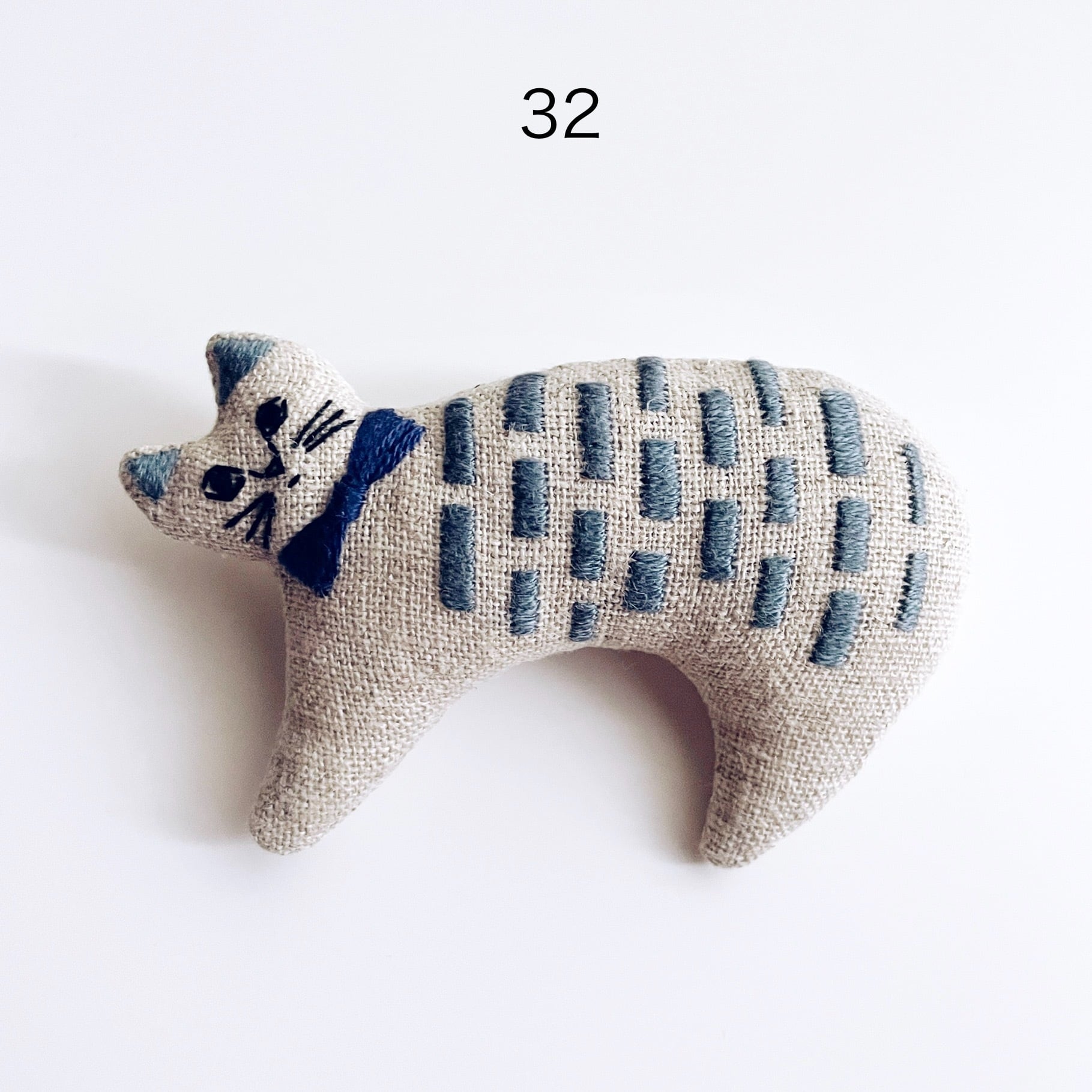 リネン生地に色んな猫の模様を思い浮かべて刺繍をしています。