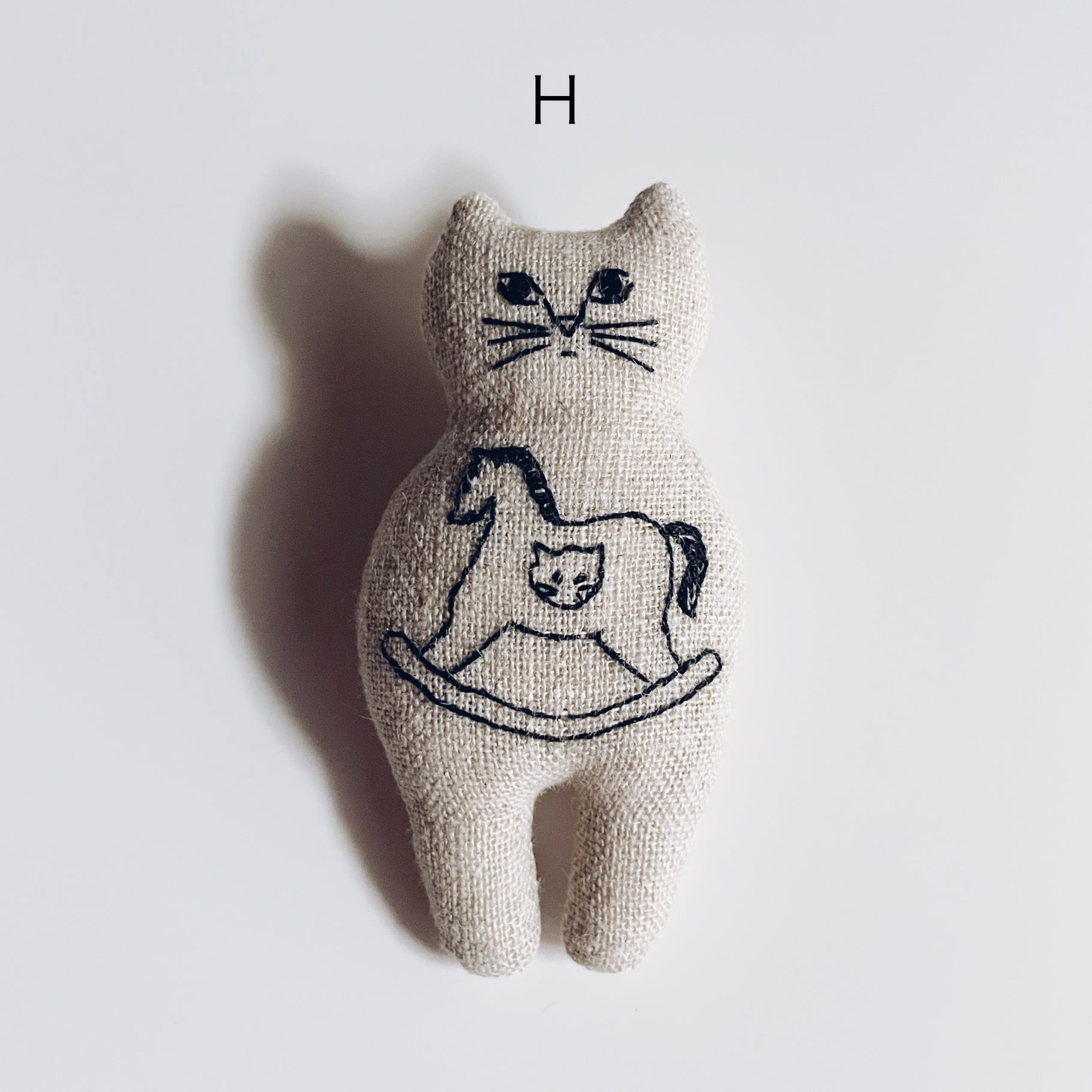 リネン生地に木馬を刺繍しました