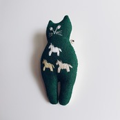 正面ネコブローチ 緑を駆ける仔馬たち T